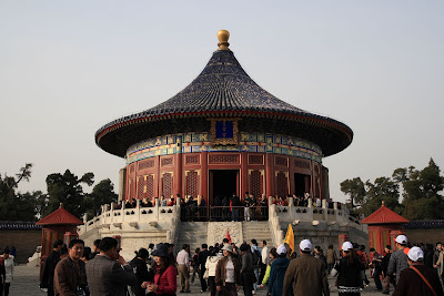 祈年殿及皇穹宇,話說在我坐在旁邊看看怎拍這張相時,旁邊的香港人用廣東話講「一腳踢我落去」,等他和朋友再說多兩句時,我才輚個頭,隔著變了最深色的眼鏡「啤」住佢,那個人便急急腳消失於人海中
